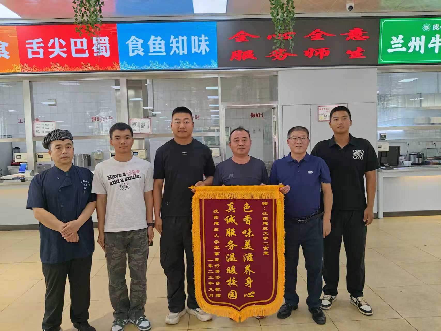 9月28日,沈阳建筑大学军事爱好者协会专程为后勤服务中心第二餐饮中心送来一面“色香味美滋养身心,真诚服务温暖校园”的锦旗,感谢第二餐饮中心在军训期间为教官团队提供的高品质餐饮服务保障。