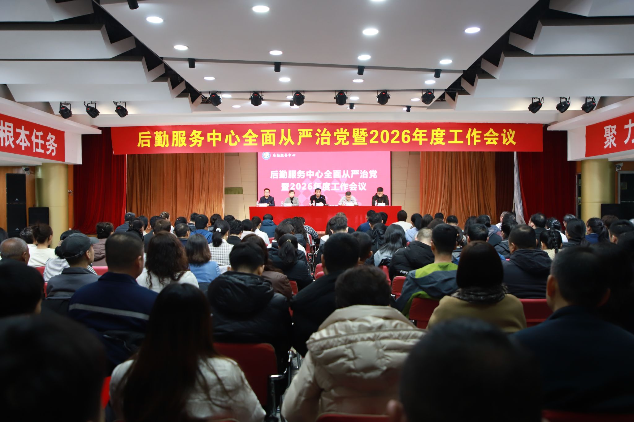 为深入推进全面从严治党,系统总结“十四五”规划发展成效,精准部署“十五五”及2026年重点任务,2月25日上午,后勤服务中心召开全面从严治党暨2026年度工作会议。中心领导班子成员、中层管理人员、职工代表及外包物业服务人员共160余人参会。会议由中心党委书记梁军保主持。